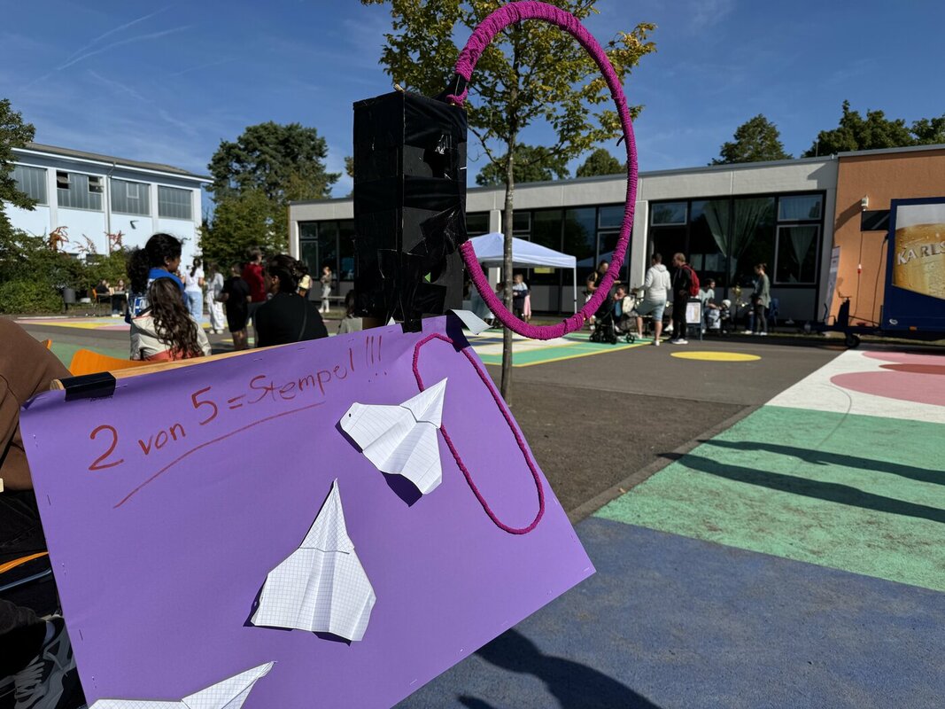 Auf dem Schulhof und in den Gängen war überall etwas los. Kinder ließen sich bunt schminken, andere knobelten beim Schach oder tüftelten daran, den zielsichersten Papierflieger zu bauen. Natürlich durfte auch das Essen nicht fehlen: Von zarten Macarons über knackige Würstchen bis hin zu Zuckerwatte und frischer Bowle war für jeden Geschmack etwas dabei – und das wurde auch fleißig probiert.
